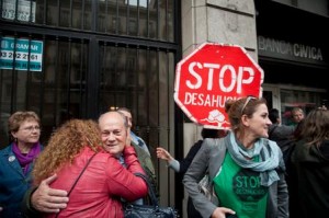 Al grito de «sí, se puede» y fundidas en un emotivo abrazo, unas 40 personas convocadas por la Plataforma de Afectados por la Hipoteca celebraban a mediodía de este jueves frente a la sucursal de Banca Cívica en la Ronda de la Universitat de Barcelona un final relativamente feliz para una historia dolorosa.