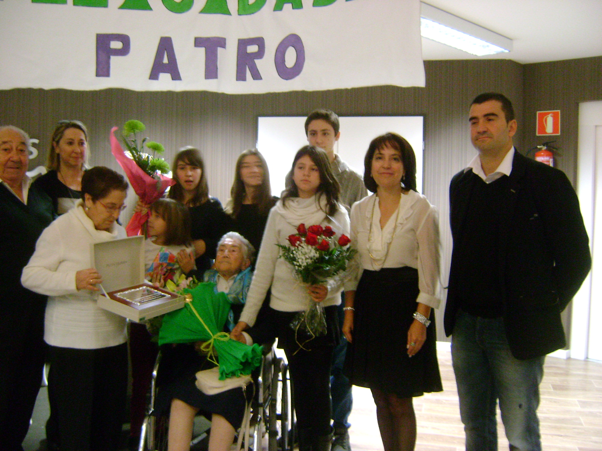 Durante el acto, Dº Antonio Ángel Moleón, alcalde Arroniz, ha obsequiado a la residente con una placa conmemorativa y un ramo de flores y la directora de Sanitas Residencial Luz de Estella, Esther Pinillos, le ha hecho entrega de una pañoleta y un frasco de colonia en nombre del centro residencial.